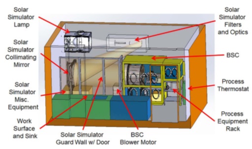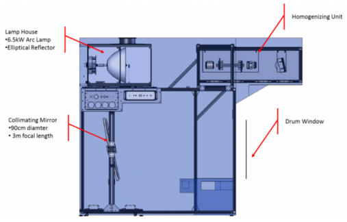 科學(xué)家聯(lián)系了我們,需要開發(fā)定制的太陽能模擬器,以實現(xiàn)政府的高度優(yōu)先研究計劃。他們對研究高層大氣中的空氣污染效應(yīng)和光化學(xué)具有獨特而特殊的光譜要求??蛻舻臉悠肥沂且粋€裝有懸浮氣溶膠的旋轉(zhuǎn)圓柱鼓,需要均勻和準直的照明。但是,狹窄的實驗室空間以及連接到樣品桶的其他設(shè)備的存在對我們提出的解決方案施加了多個限制。