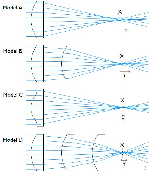 D型-三透鏡系統(tǒng):一種高質(zhì)量的選件,與Model A或Model B相比,聚焦時(shí)的光斑尺寸更小,或者在準(zhǔn)直時(shí)具有更高的質(zhì)量準(zhǔn)直。它的材料范圍也比Model C多。