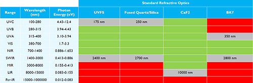 可以選擇不同的材料在不同的波長范圍內(nèi)傳輸。 下表中列出了一些**常見的選項(xiàng),以快速參考每種材料的**有用范圍。