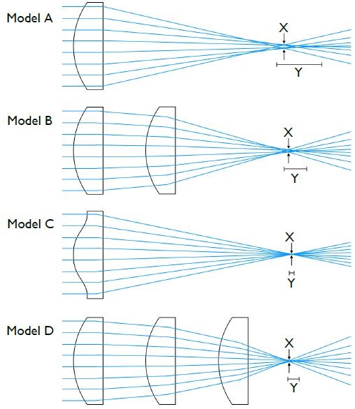 D型-三透鏡系統(tǒng):一種高質(zhì)量的選件,與Model A或Model B相比,聚焦時的光斑尺寸更小,或者在準(zhǔn)直時具有更高的質(zhì)量準(zhǔn)直。它的材料范圍也比Model C多。
