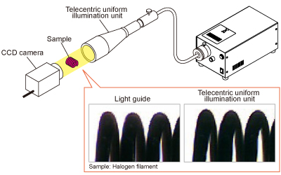 遠(yuǎn)心均勻照明裝置通過連接到準(zhǔn)直器鏡頭實現(xiàn)平行照明。