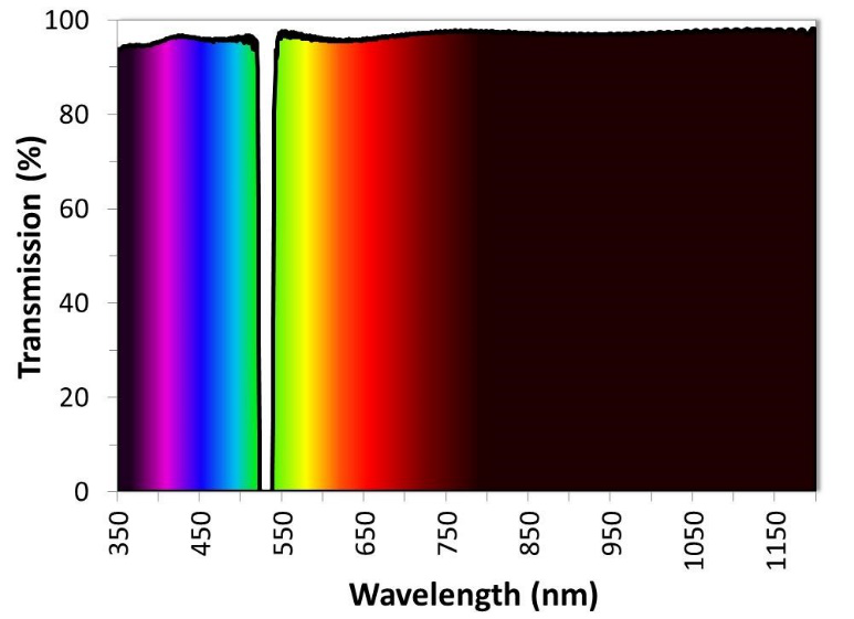 圖4.寬范圍傳輸陷波濾波器,用于**阻斷532 nm倍頻Nd:YAG激光器。