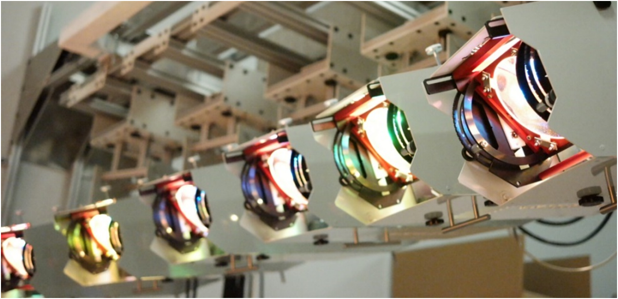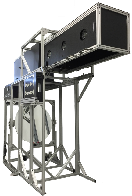 這套太陽模擬器能夠提供**接近太陽光散射角的超高準(zhǔn)直光束(散射角全角僅0.7°), 在AM0光譜條件下可提供直徑40cm的圓形輻照面積。全自動的移動裝置能夠控制太陽模